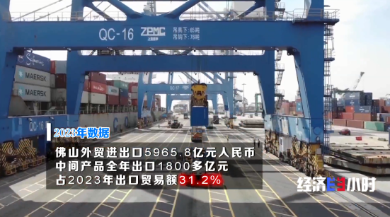 2024年前2个月,佛山外贸进出口883亿元人民币,其中中间产品出口214.1亿元,占出口贸易额的30.2%。