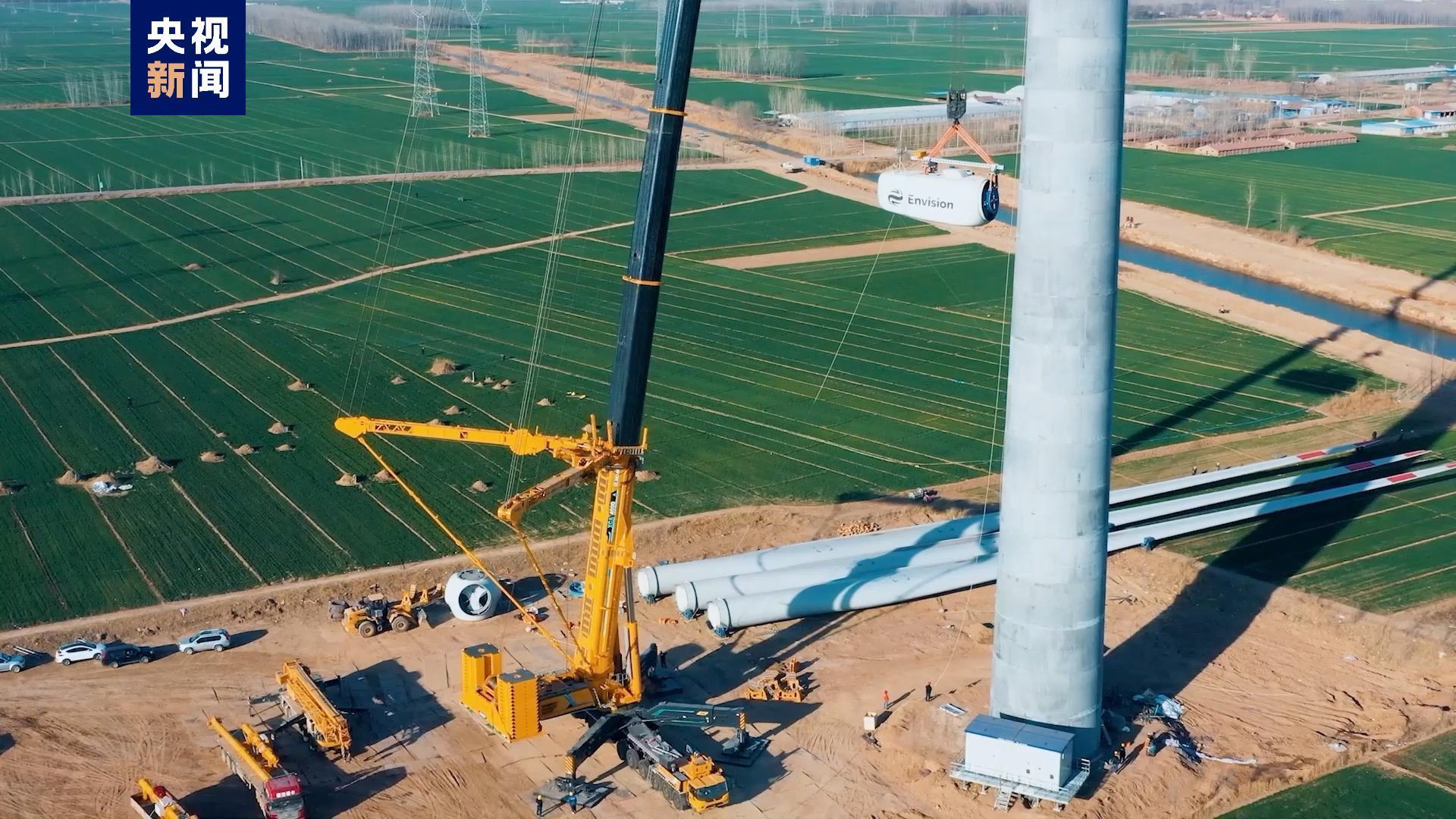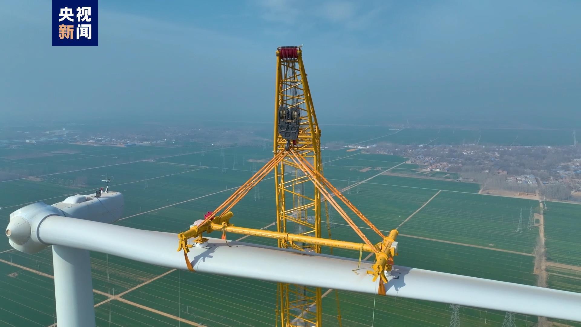 3月22日,我国自主研制的全球最大、吊装能力最强,全球首款11桥轮式起重机,在河北衡水将单机容量6.25MW的风机顺利吊装到位,完成首吊。本次吊装需要将120吨的风力发电机组机舱,以及长95米、重28吨的扇叶吊至160米的高空,相当于50多层楼高。近年来,科研人员就超高大功率风机安装、复杂臂架作业安全性提升、重载转场能力突破等风电吊装领域的痛点、难点进行了攻关,用新技术改造提升传统产业,积极促进产业高端化、智能化、绿色化。作为碳达峰、碳中和的优势主导产业,风电设备制造正朝着“更高、更重、更大”方向发展,这也给配套的施工装备提出了更高的要求。从2010年起,在千吨级起重机研发制造上,以1600吨轮式起重机为起点,“全球第一吊”的纪录不断被打破,目前,该起重机主要零部件的国产化率已达到90%。