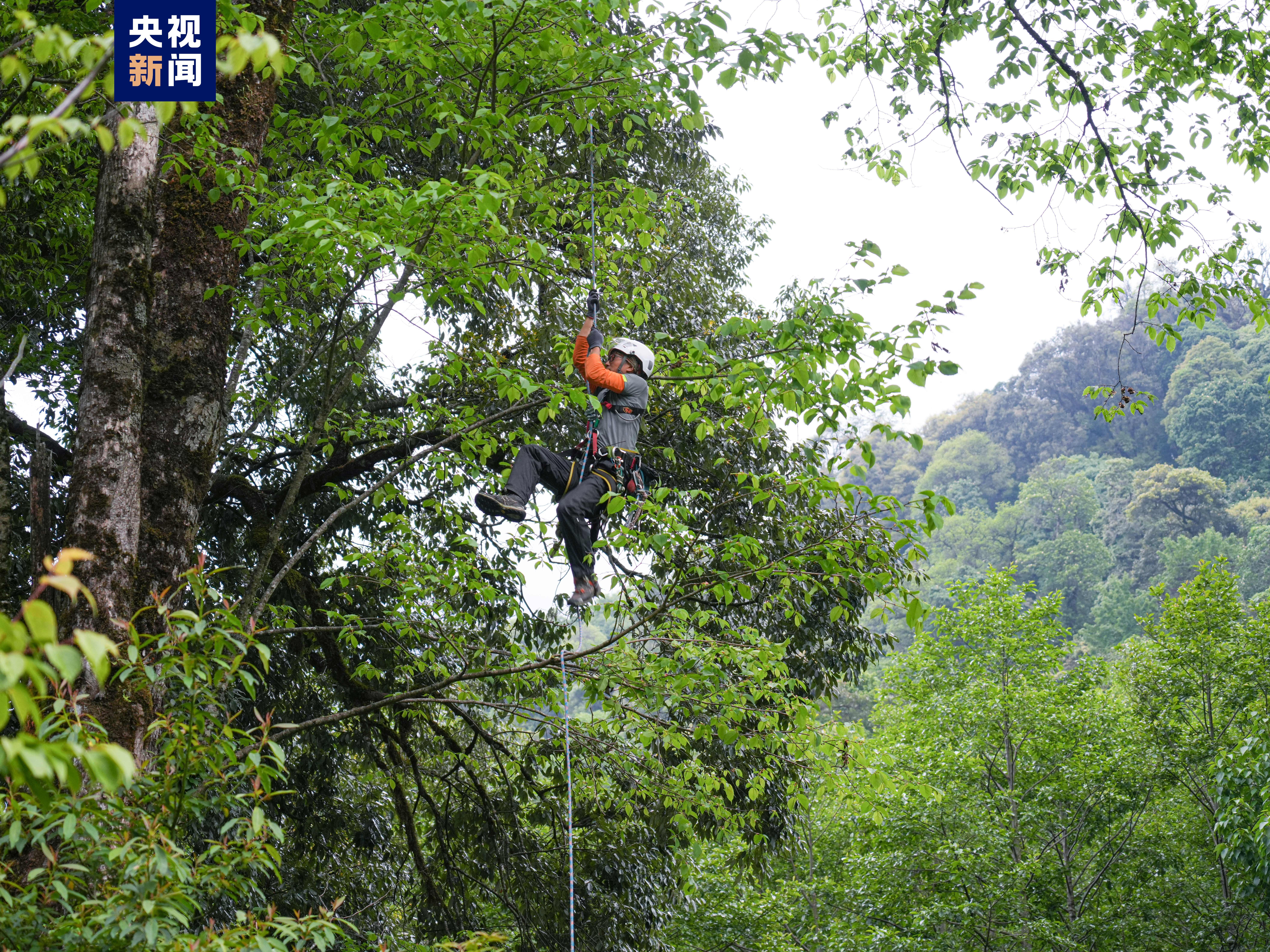 △工作人员正在攀树