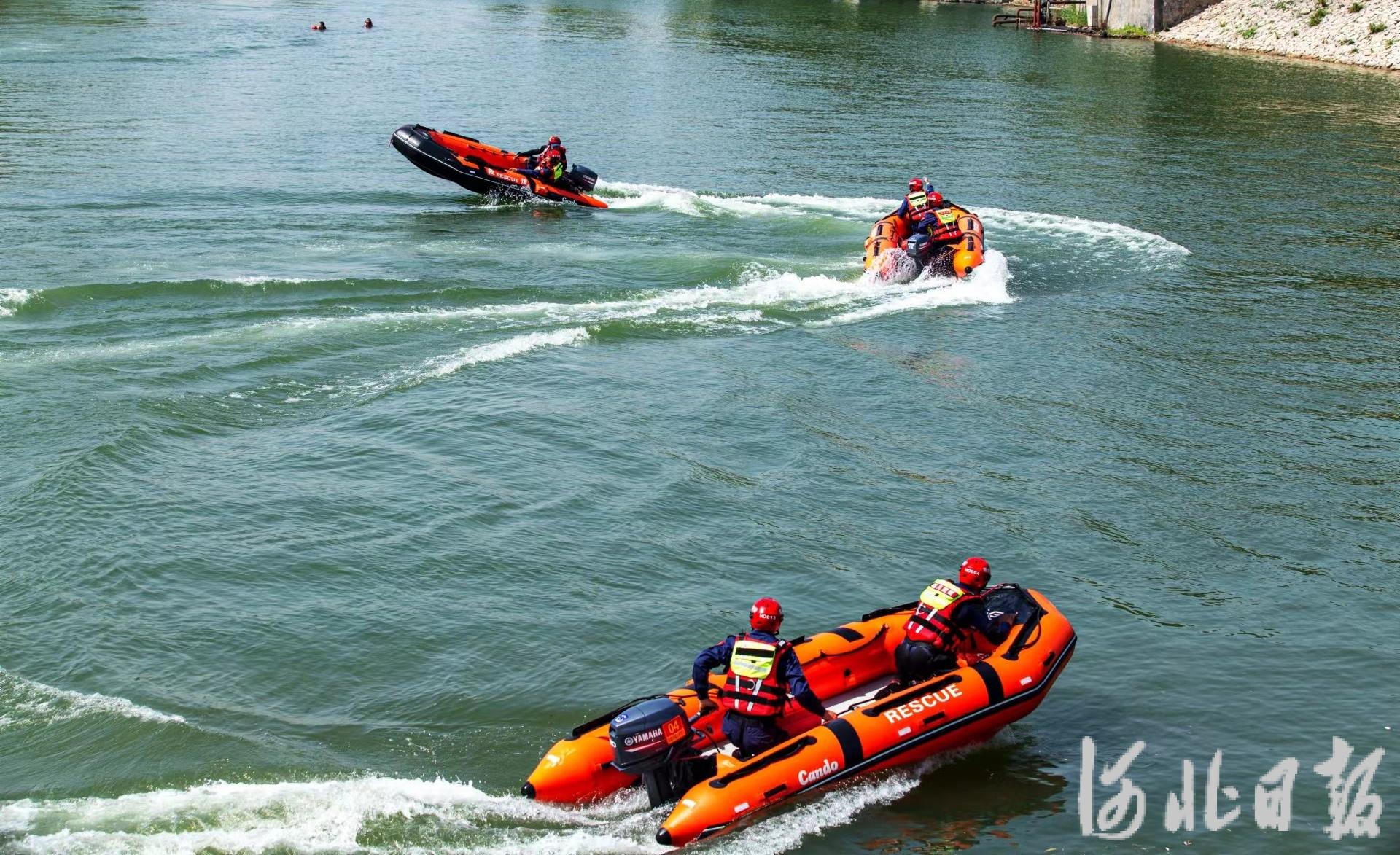5月17日,邯郸市复兴区在康庄水库进行管涌抢险、孤岛救援、抢筑子堤、水上营救等项目的防汛综合演练,切实增强抗洪抢险实战能力。河北日报通讯员 聂长青摄