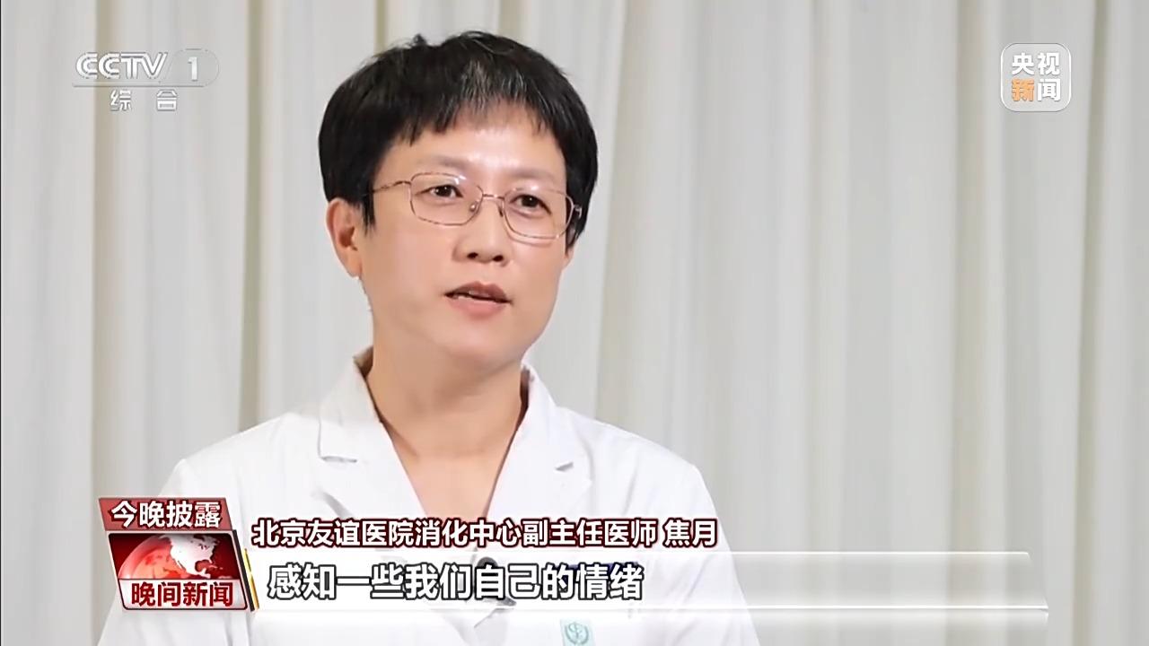 北京友谊医院消化中心副主任医师 焦月:我们要注意自己的心情,肠道会像大脑一样,感知一些我们自己的情绪。当你焦虑、着急、生气的时候,肠道也会有相应的反应。有的病人会觉得,我着急或者是有紧张的事儿时,肠道就会有便秘、腹泻这些症状,当我相对情绪稳定的时候,这些症状就会消失。