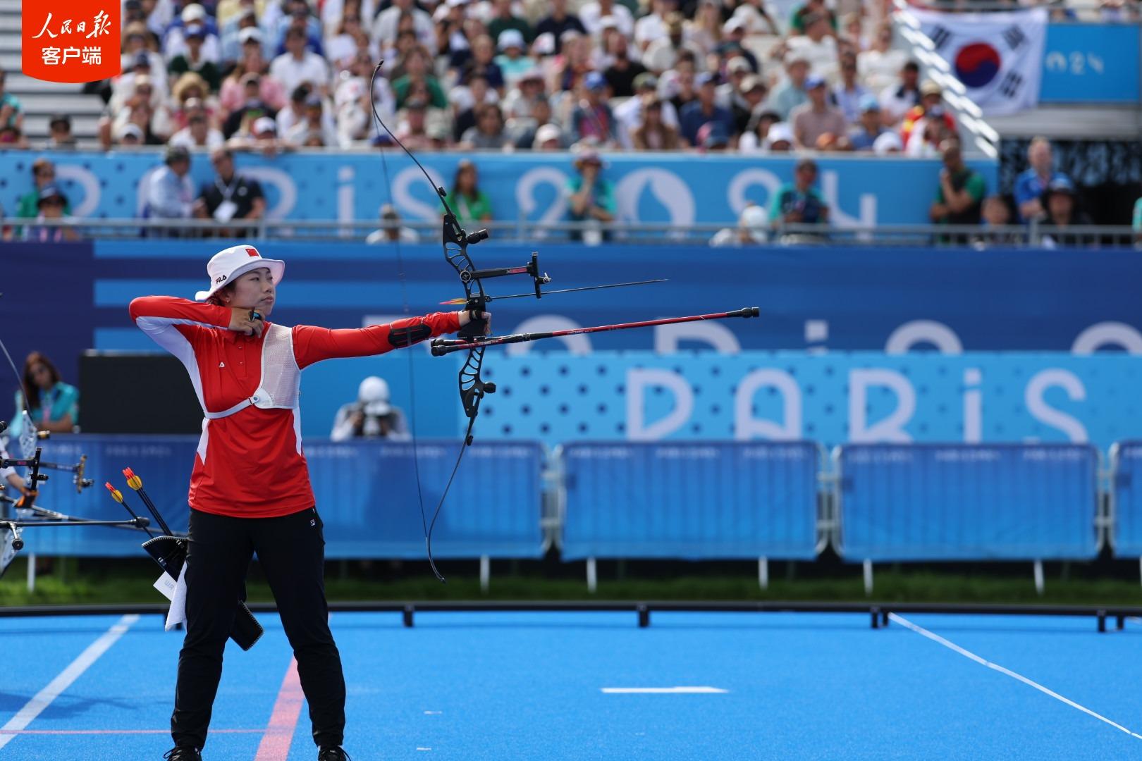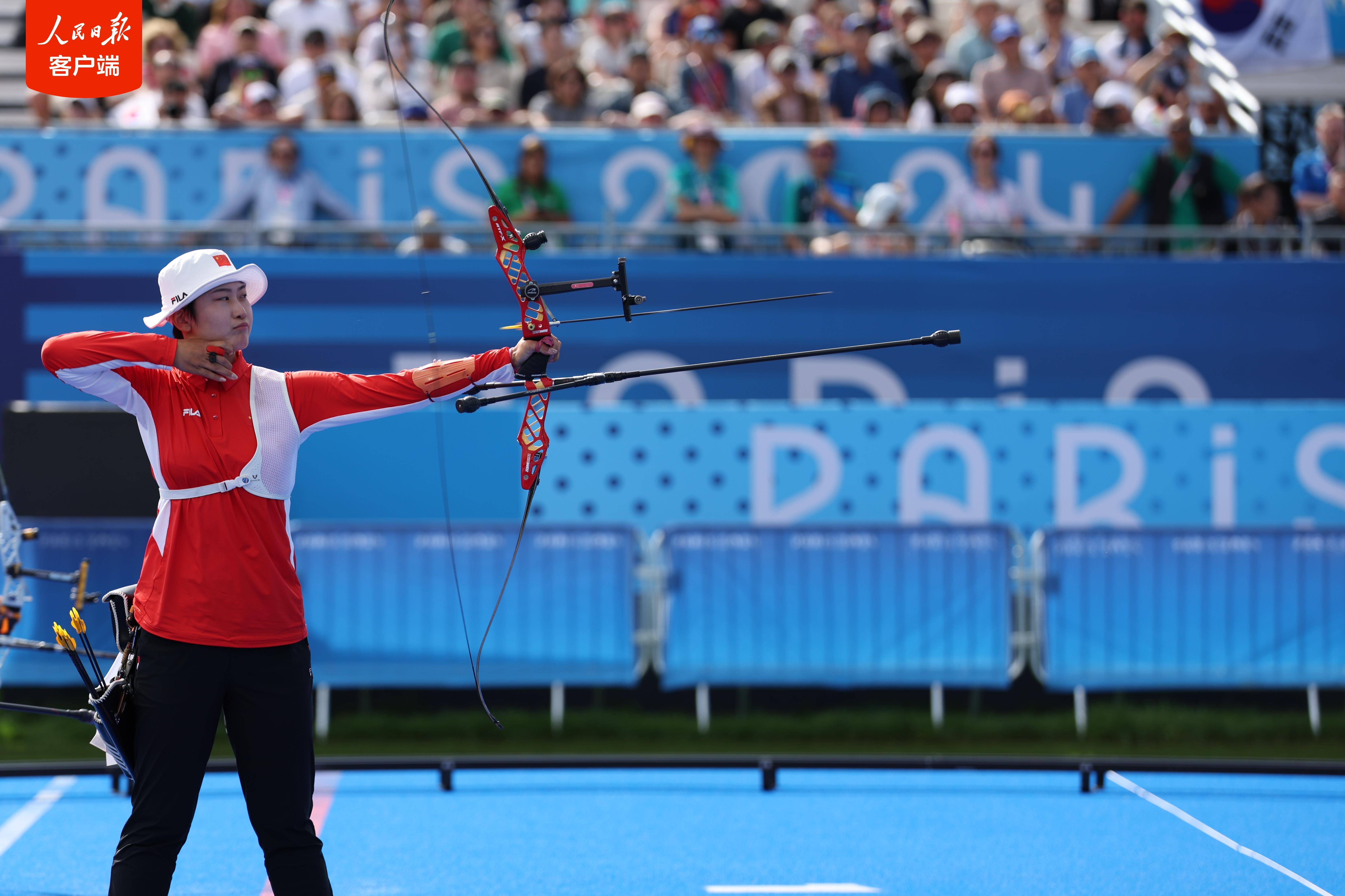 当地时间7月28日,在巴黎奥运会射箭女子团体决赛中,由李佳蔓、杨晓蕾、安琦轩组成的中国女队不敌韩国队,获得银牌。