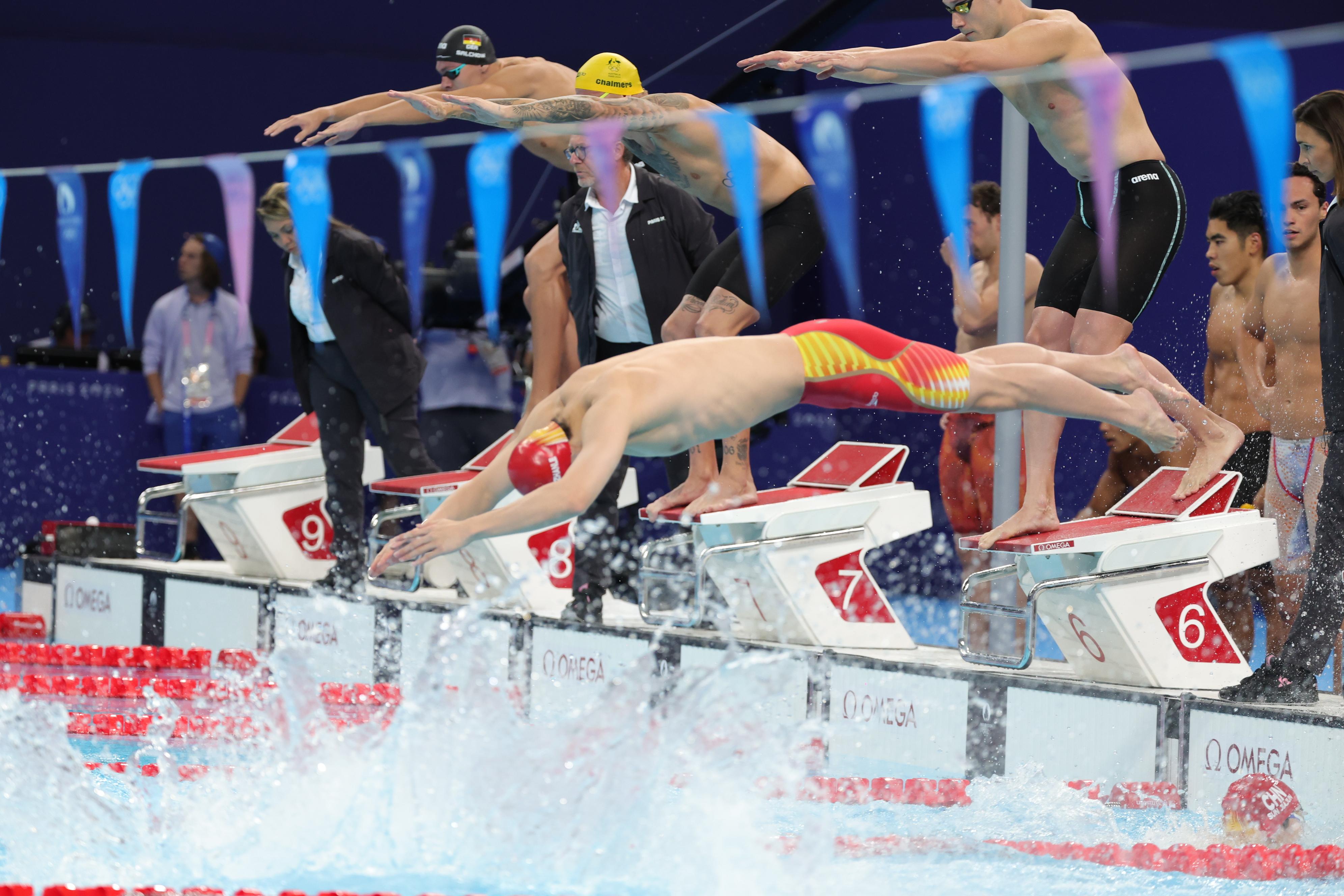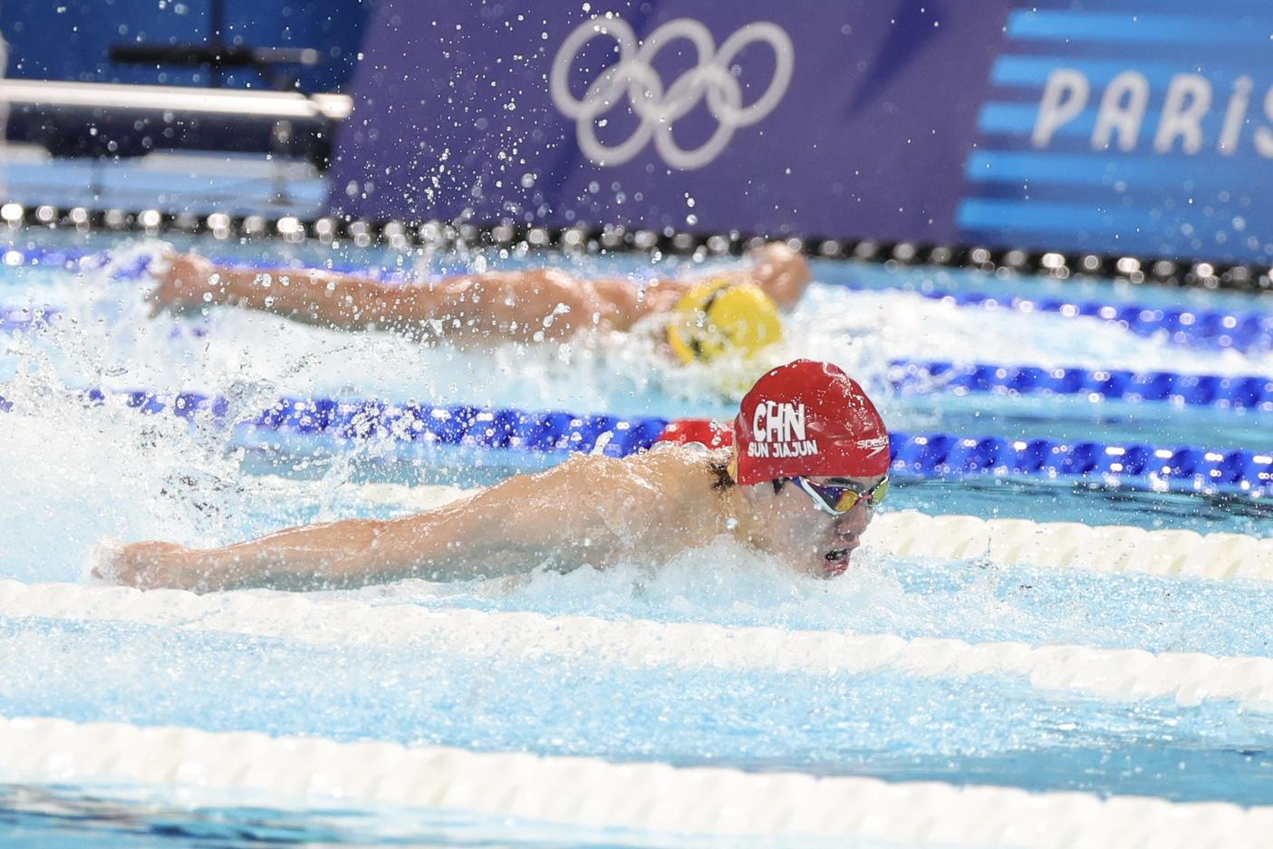 当地时间8月4日,巴黎奥运会游泳项目在拉德芳斯体育馆进行最后一个比赛日争夺。在刚刚结束的男子4×100米混合泳接力决赛中,由徐嘉余、覃海洋、孙佳俊、潘展乐组成的中国队夺得金牌。
