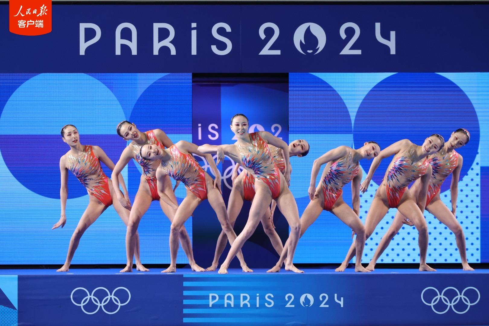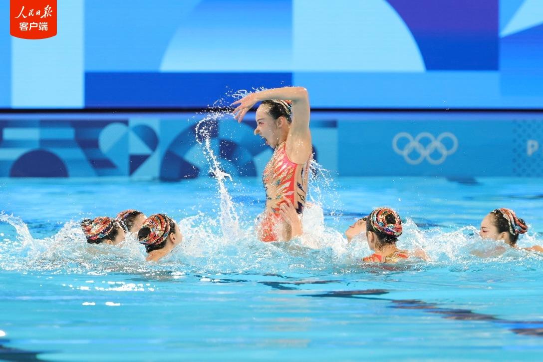 当地时间8月7日,巴黎奥运会花样游泳项目首金在巴黎水上运动中心诞生。在结束此前的集体技术自选、集体自由自选和当晚的集体技巧自选比拼后,8名选手组成的中国队以总分第一的成绩夺得集体项目金牌。这是中国花样游泳队参赛史上首夺奥运金牌。
