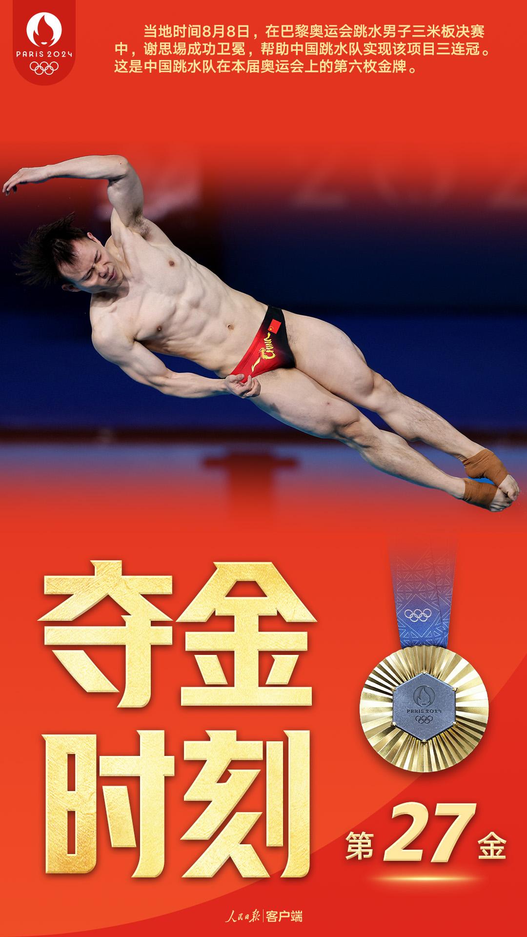 当地时间8月8日,巴黎奥运会跳水项目在巴黎水上运动中心继续进行。在刚刚结束的男子三米板决赛中,谢思埸成功卫冕,帮助中国跳水队实现该项目三连冠,王宗源获得银牌。这是中国跳水队在本届奥运会上的第六枚金牌。