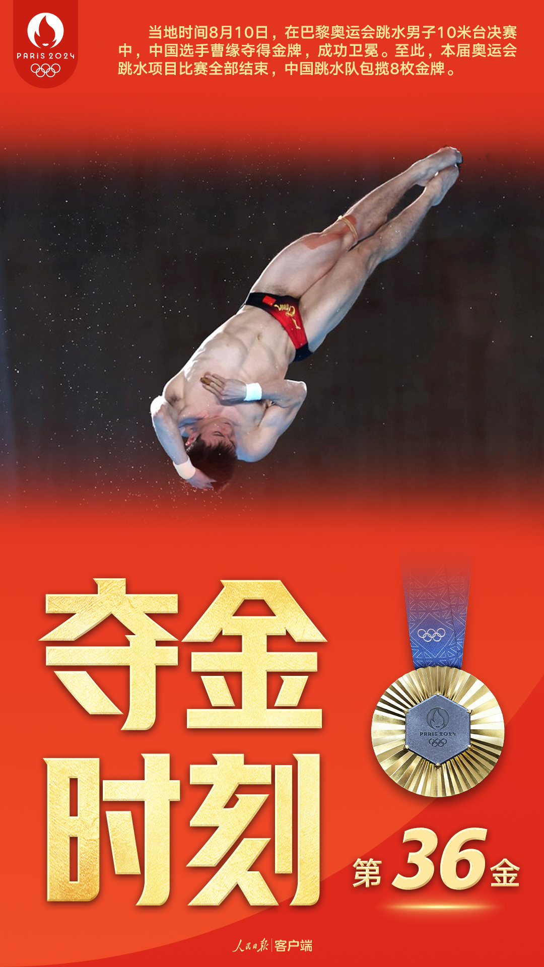 当地时间8月10日,在巴黎奥运会跳水男子10米台决赛中,中国选手曹缘夺得金牌,成功卫冕。至此,本届奥运会跳水项目比赛全部结束,中国跳水队包揽8枚金牌。