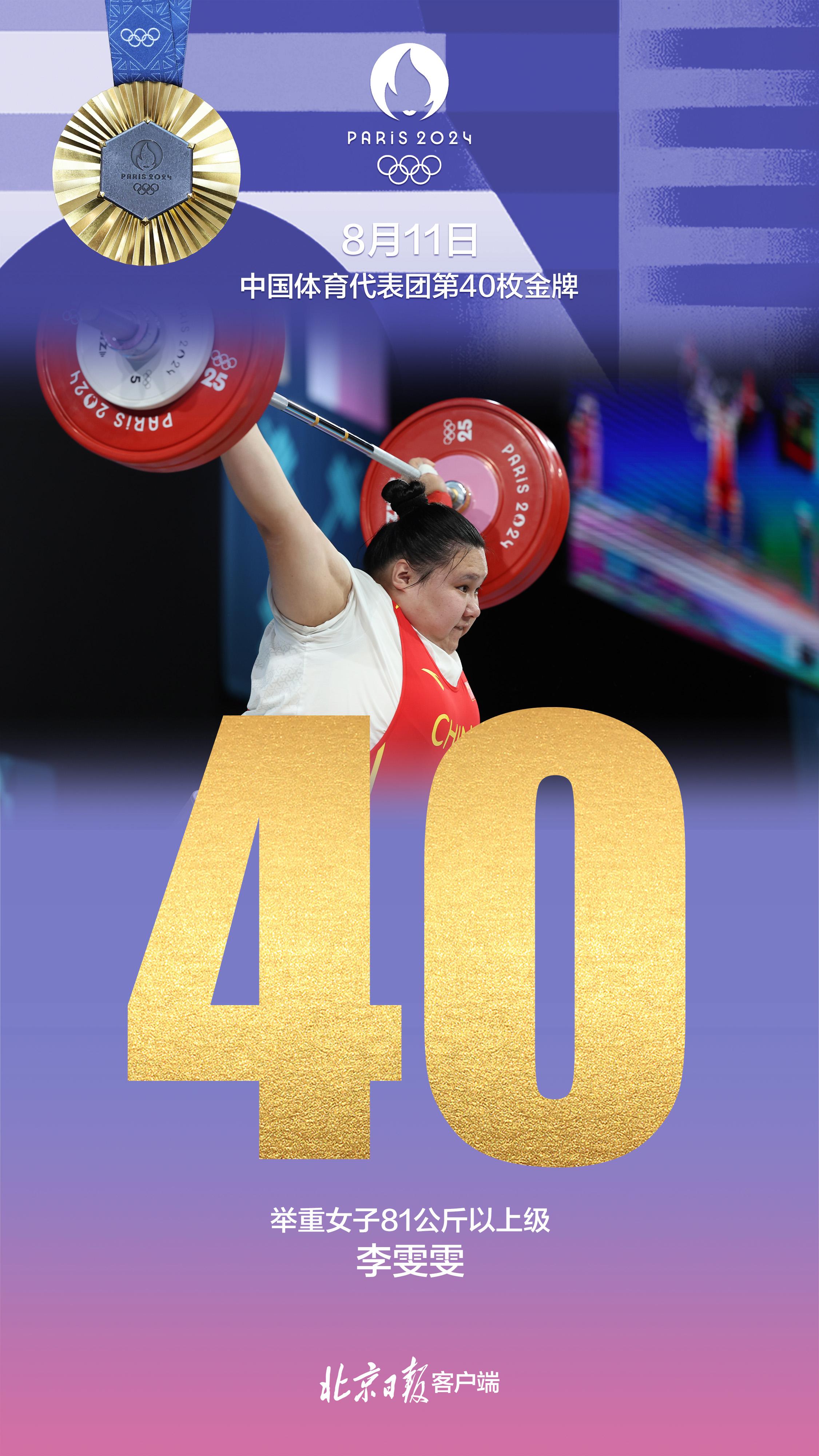 在刚刚结束的巴黎奥运会举重女子81公斤以上级决赛中,中国选手李雯雯获得冠军,为中国体育代表团摘下第40枚金牌!