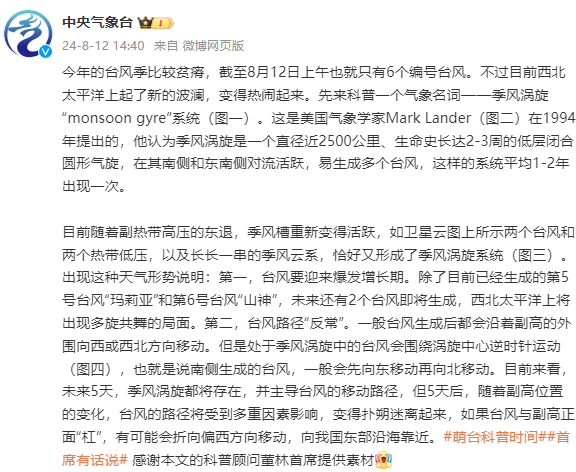 截至8月上旬,今年西北太平洋和南海生成的台风个数还偏少,为何这几天台风却接二连三“扎堆”生成?