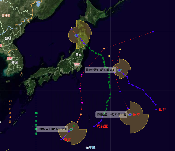 它们“消散”阶段,今年第7号台风“安比”在西北太平洋洋面上生成并趋向日本本州岛东南洋面,今年第8号台风“悟空”也相继生成,“悟空”对我国也无影响。