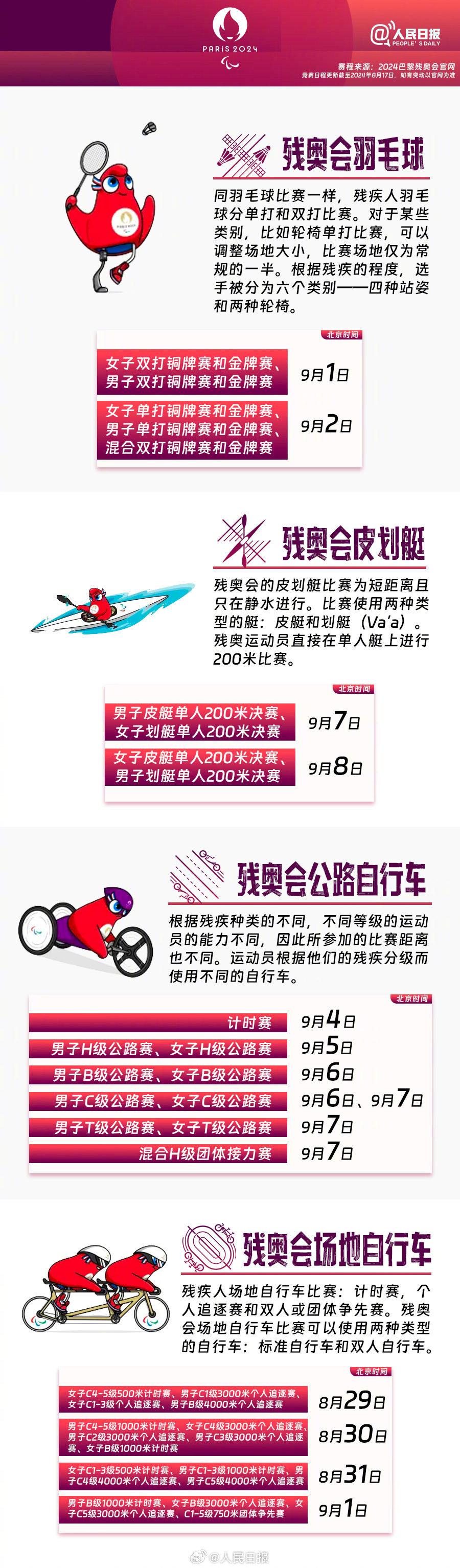 他们也值得你的关注!巴黎残奥会赛程表来了