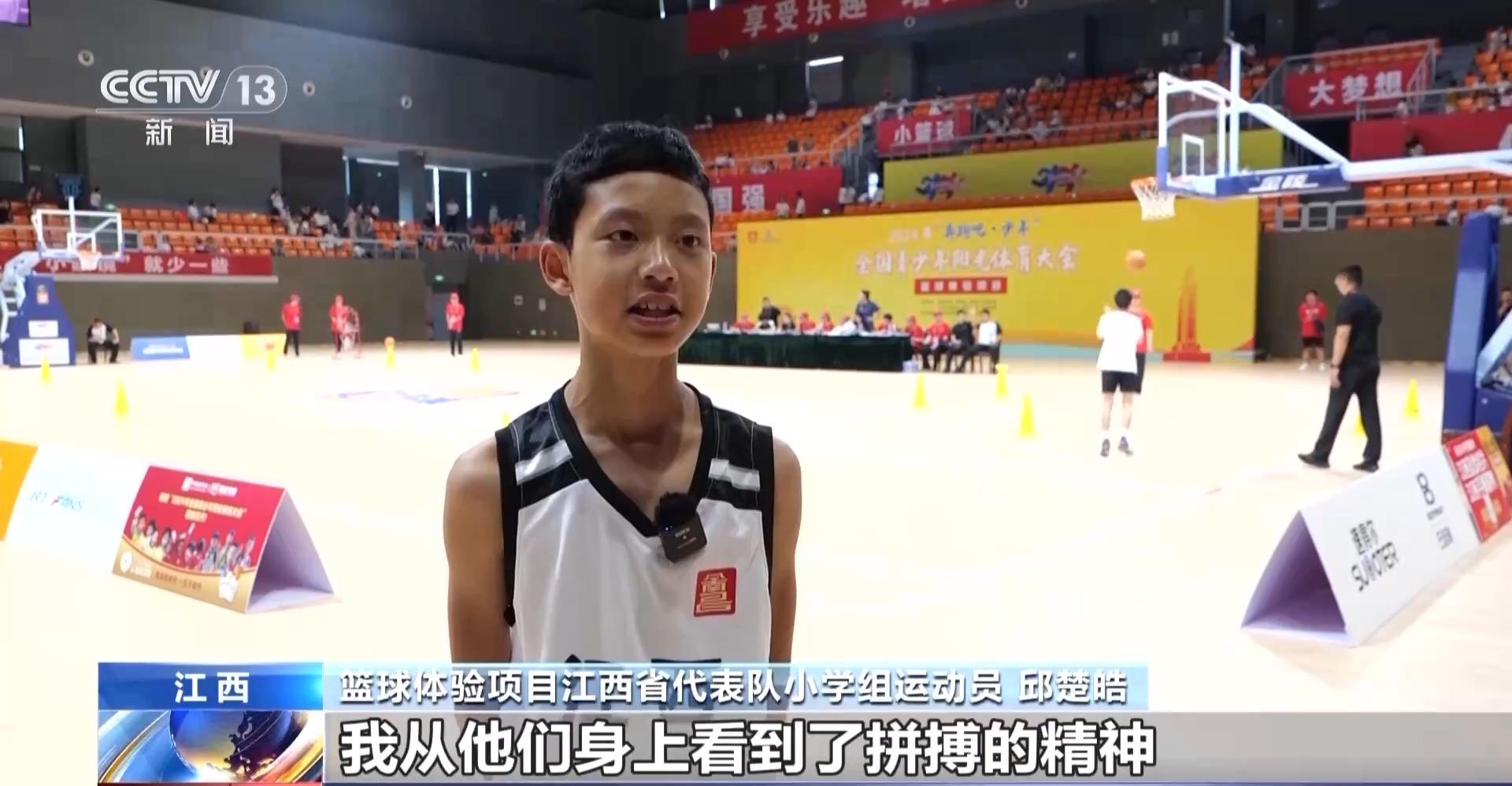 篮球体验项目江西省代表队小学组运动员 邱楚皓:大家都很努力,我从他们身上看到了拼搏的精神。平时我都是和朋友或者队友一起比赛,这次我可以和全国的好朋友一起比赛,感觉非常好。