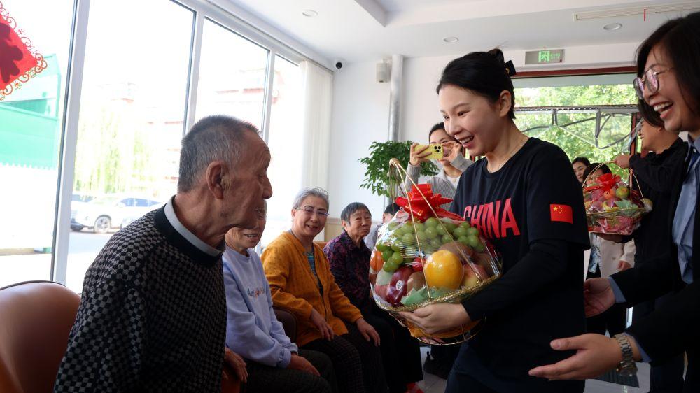 随后,何可欣走进路北区钓鱼台街道钓南楼社区与社区居民互动,为老人送上节日的祝福和礼物。