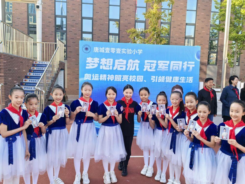 活动中,何可欣走进唐城壹零壹实验小学、唐山市第十二初级中学,学校全体师生热情迎接奥运冠军的到来。