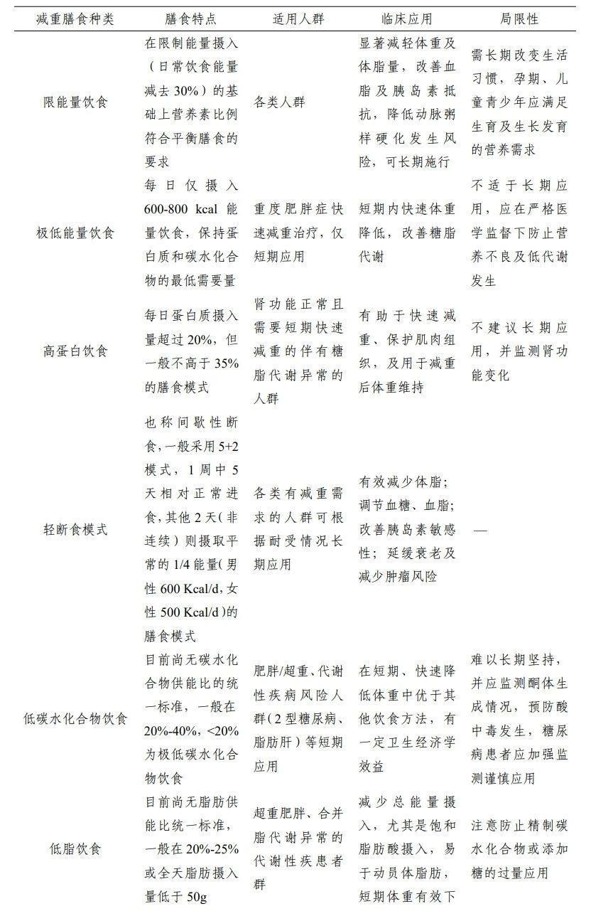 临床营养治疗是肥胖症综合治疗的基础疗法,可分四步,即营养筛查及评估、干预、监测、 营养教育与管理。医学减重膳食是为了满足肥胖症患者的基本能量需求和减重需求而采取的调整营养素比例的膳食方式,主要包括限能量饮食、高蛋白饮食、轻断食模式、低碳水化合物饮食等方式。