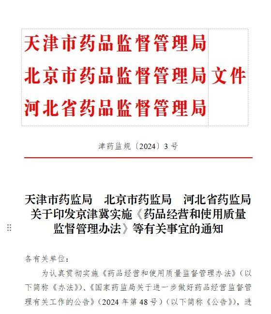《关于京津冀实施〈药品经营和使用质量监督管理办法〉等有关事宜的通知》重点条款解读