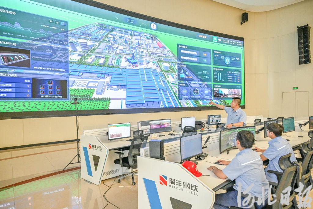 日前,唐山瑞丰钢铁集团有限公司员工查看“减污降碳协同创新一体化平台”运行情况。河北日报记者 赵杰摄