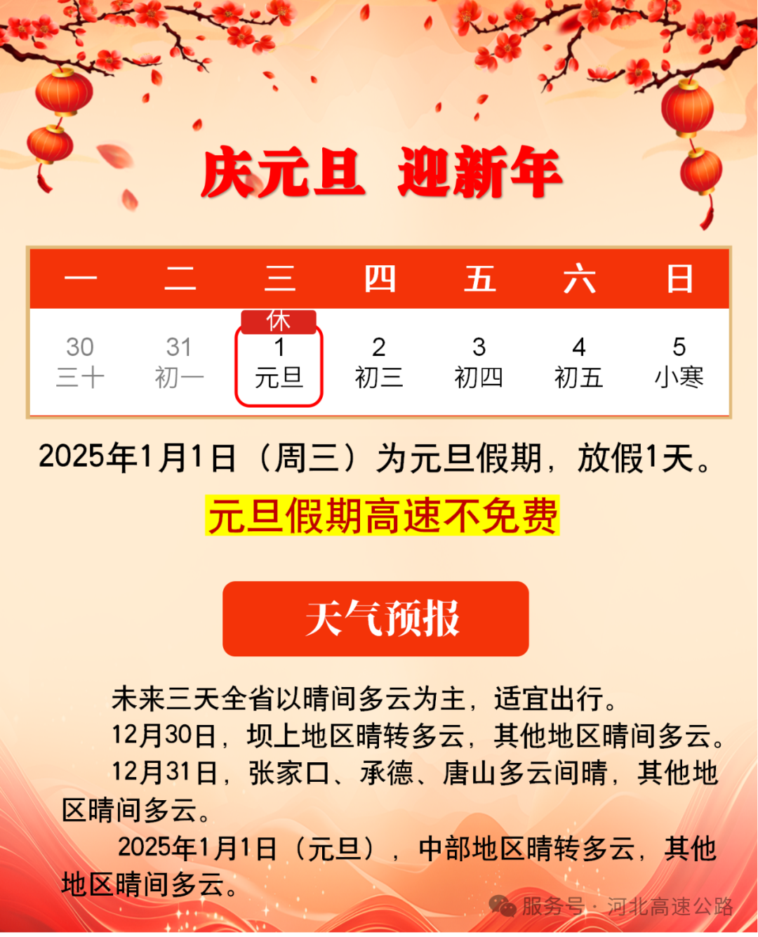 河北高速发布元旦假期出行提示