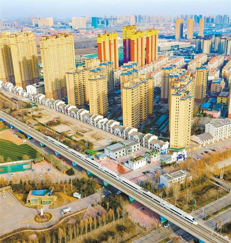 12月25日,高铁列车经过正定县塔元庄村。