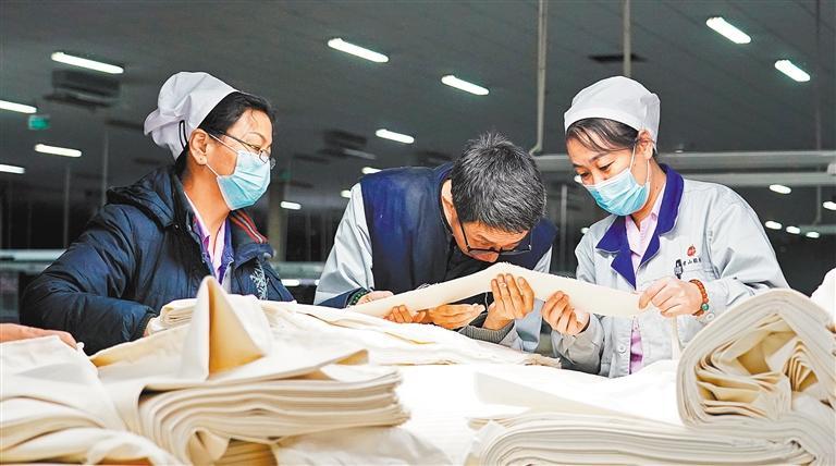 12月26日,位于正定高新技术产业开发区的石家庄常山恒新纺织有限公司,工人在检验产品。