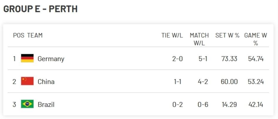 北京时间12月30日,联合杯网球赛小组赛,中国队1-2不敌德国队,排名E组第二,也以珀斯赛区成绩最好的小组第二身份晋级,连续第二年打进联合杯八强!