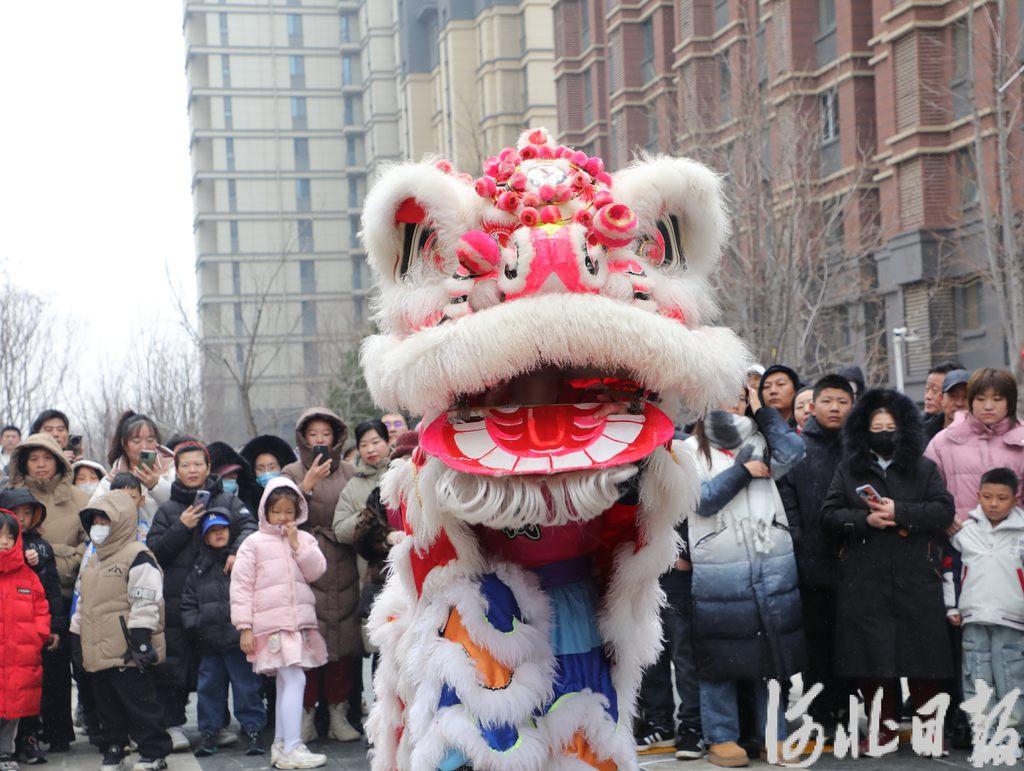 2月1日,“春节·雄安狮舞大会”走进雄安新区南文营社区,为居民送上精彩的舞狮表演。齐佳宁 摄