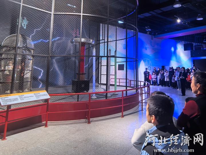 河北省科技馆里音乐特斯拉和高压放电演示,吸引了众多观众驻足参观。河北经济日报记者 吴新光 摄