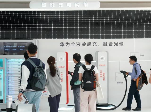 2024年4月30日,在北京车展上,观众在华为展区参观智能充电网络。 新华社发