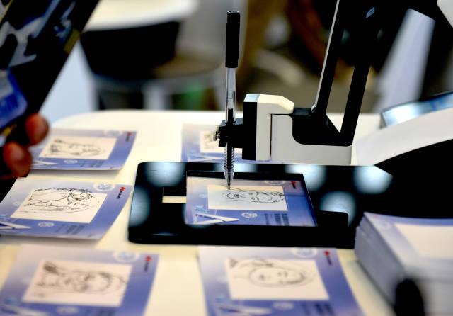 2024世界人工智能大会暨人工智能全球治理高级别会议,在华为公司展台拍摄的智能素描设备。该设备可通过现场拍摄画出素描图。新华社发