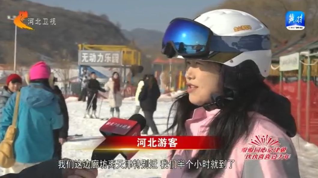 瓣瓣同心京津冀,欢欢喜喜过大年。我是北京台记者赵煦。我现在来到的是天津市蓟州区的盘山滑雪场。在这个春节,也有很多人选择来到盘山滑雪场,去感受一下冬日里的速度与激情。
