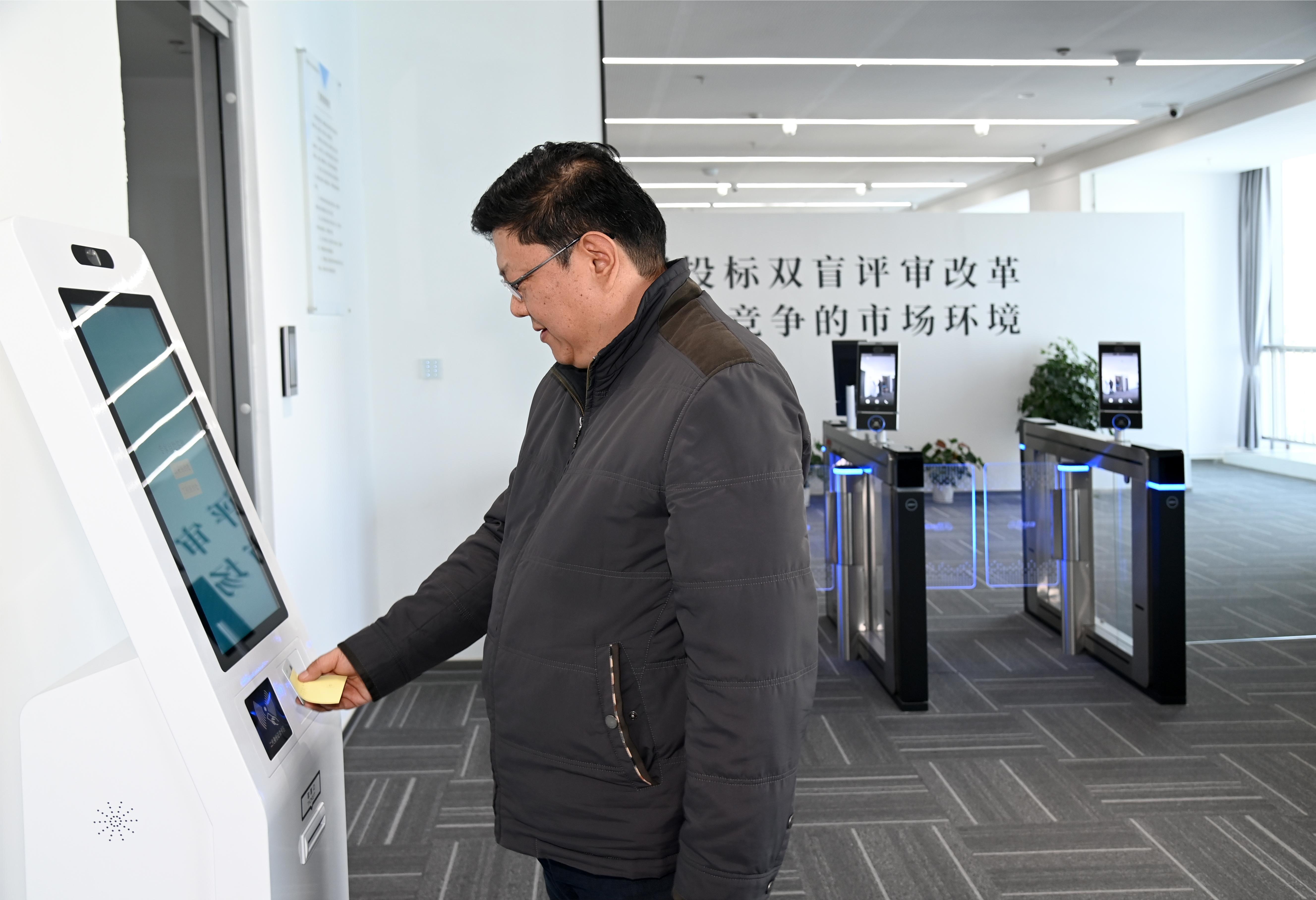 评审专家通过身份识别,准备进入评标区。(图片来源:石家庄日报)