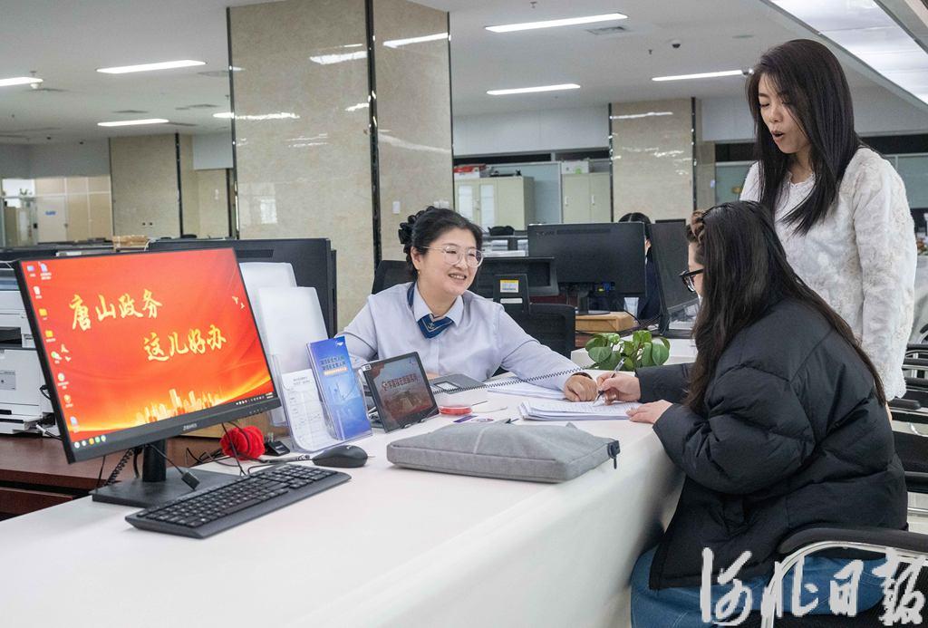 1月26日,唐山市政务服务中心大厅工作人员为群众办理业务。 河北日报记者 赵杰 摄
