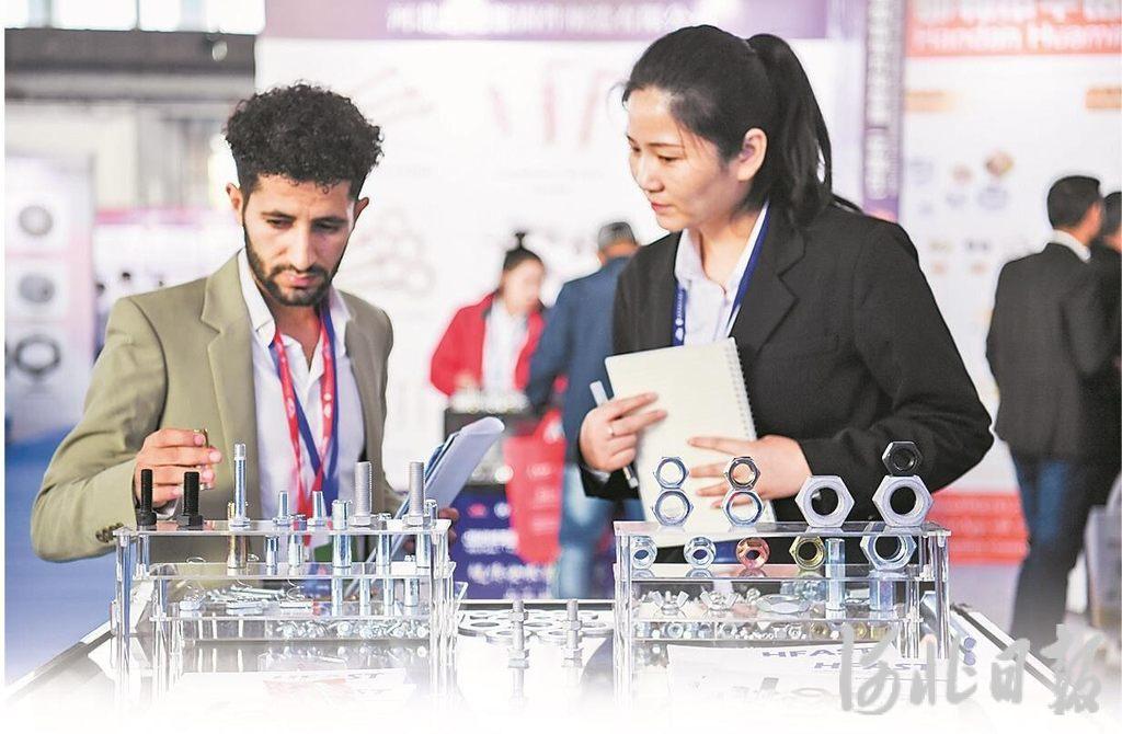 在2024年中国·永年紧固件基地国际采购大会上,一位外商正在了解河北企业的产品。河北日报资料片