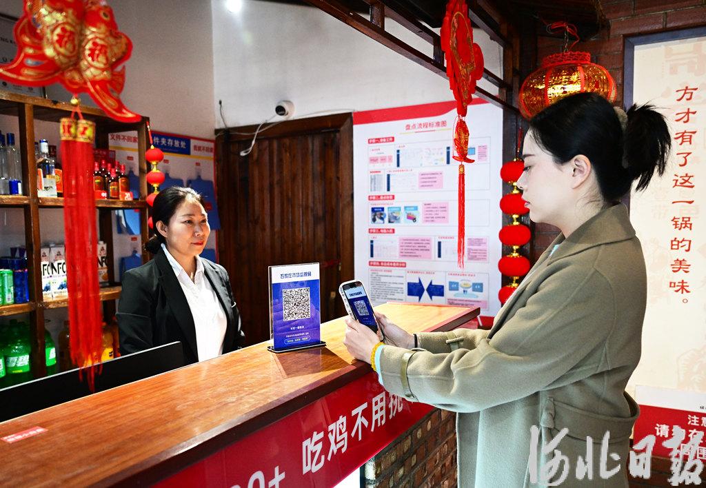 2月5日,市民在石家庄市长安区一家饭店内,扫描柜台前的“石监码”。河北日报记者 李东宇 摄