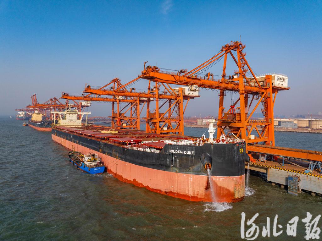 在唐山港,随着悠扬的汽笛声划破长空,一艘艘来自世界各地的货轮靠岸停泊,将全球货物引进来,同时将国内货物源源不断地送出去。