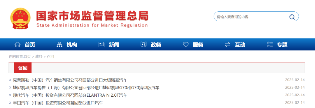 发布最新召回通告