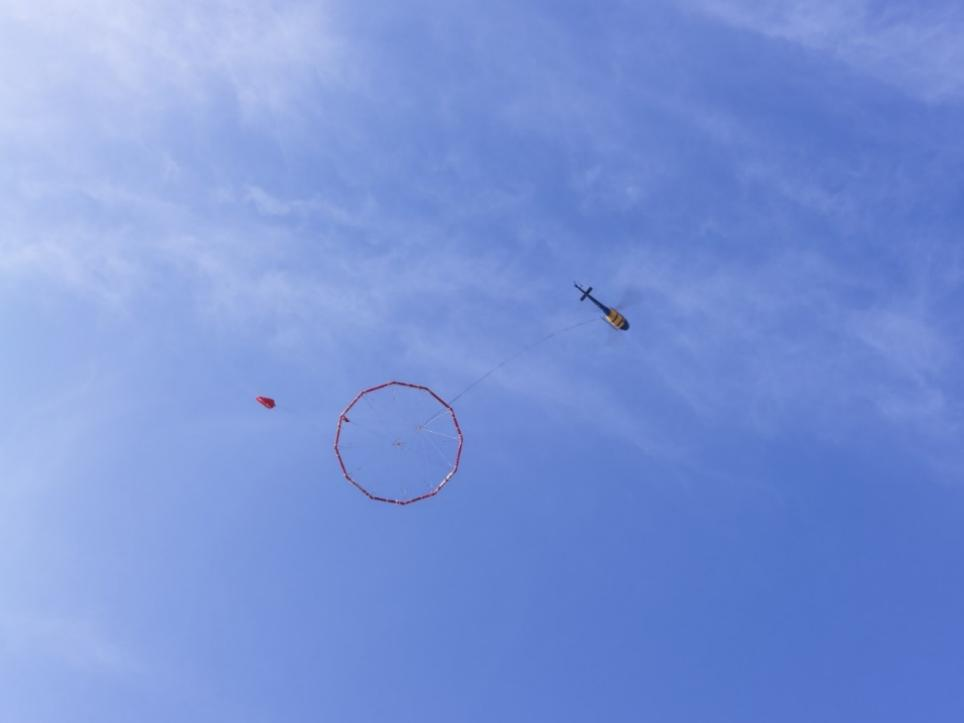 我国首套直升机航空大地电磁探测系统探测作业场景。(中国科学院空天信息创新研究院供图)
