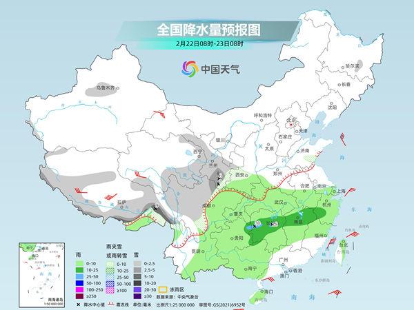 具体来看,中央气象台预计,今天,内蒙古中部、新疆南疆盆地西部山区、西藏北部、甘肃东部和南部、宁夏南部、陕西中部、华北南部、川西高原南部等地部分地区有小雪或雨夹雪,西藏东部和南部部分地区有中到大雪。陕西南部、黄淮西部、江淮西部、江汉、江南、西南地区东部、云南东南部、华南大部等地部分地区有小到中雨,其中,湖南南部局部地区有大雨。