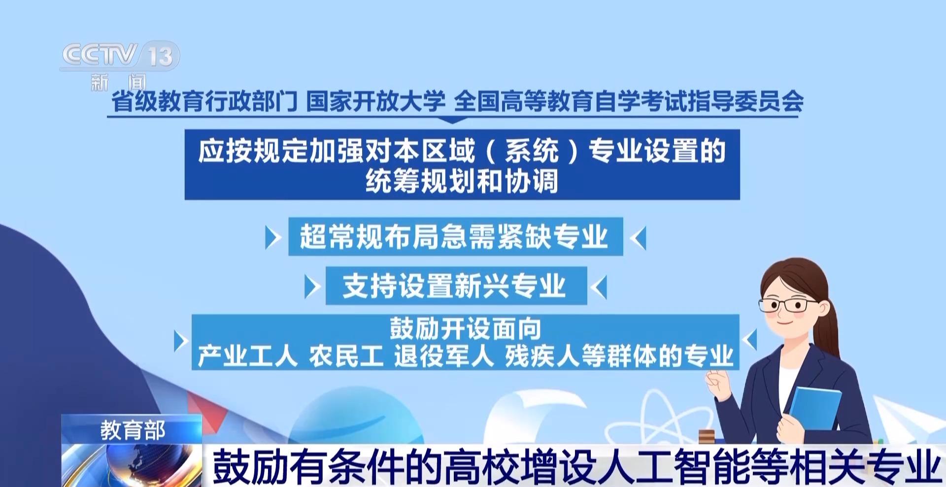 省级教育行政部门、国家开放大学、全国高等教育自学考试指导委员会应按规定加强对本区域(系统)专业设置的统筹规划和协调,超常规布局急需紧缺专业,支持设置新兴专业,鼓励开设面向产业工人、农民工、退役军人、残疾人等群体的专业。