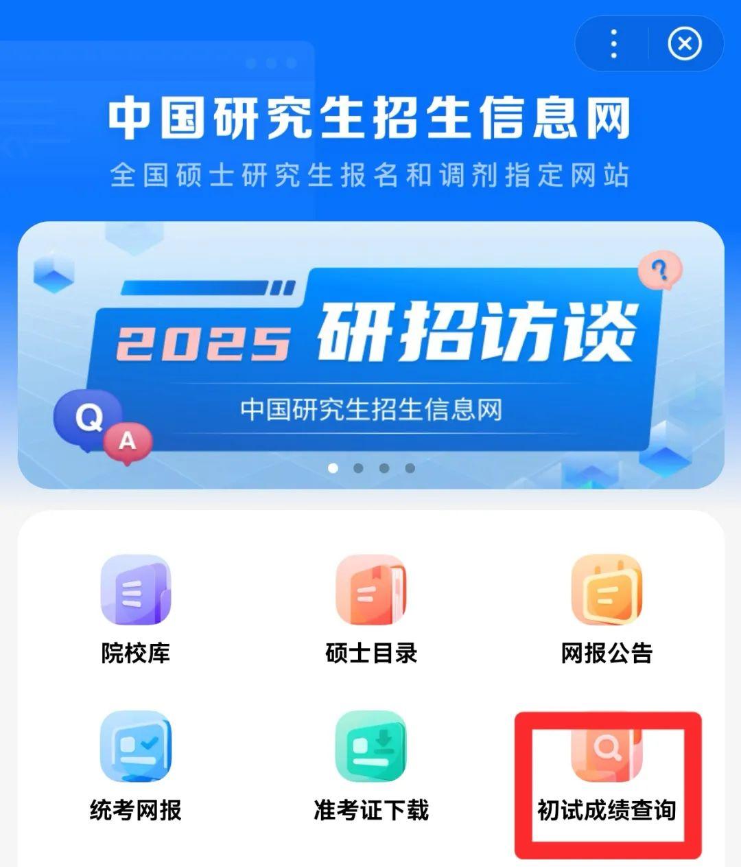 研招网硕士初试成绩查询服务由各招生单位自主选择使用,研考生可通过研招网“2025年考研分数查询及复试分数线汇总”专题,进行初试成绩查询: