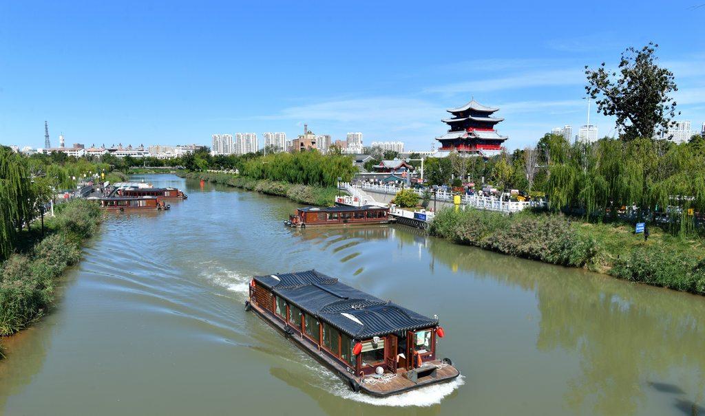 2024年10月2日,游船在京杭大运河河北省沧州段行驶。 新华社发