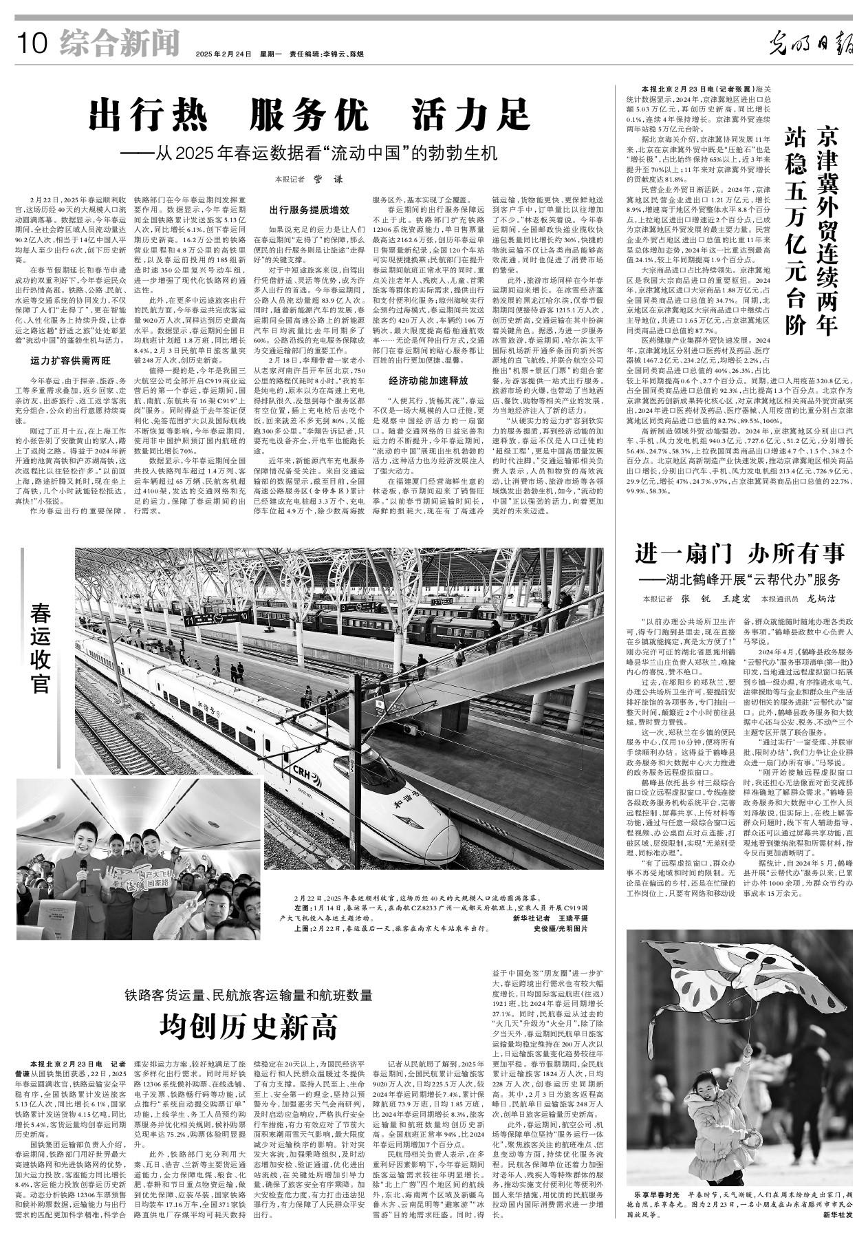 光明日报北京2月23日电(记者张翼)海关统计数据显示,2024年,京津冀地区进出口总额5.03万亿元,再创历史新高,同比增长0.1%,连续4年保持增长。京津冀外贸连续两年站稳5万亿元台阶。