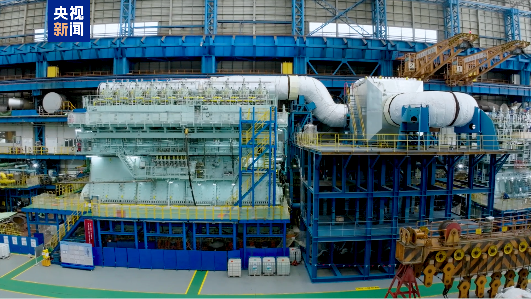 中船集团中船动力甲醇发动机项目经理 董晶瑾:打个比方,假如这台主机每年运行300天,那么它减排的碳排放量相当于72000辆普通家用燃油车一年的排放量。