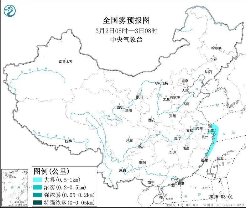 预计2日白天至夜间,长江口及杭州湾附近海域、舟山群岛附近海域、浙江沿岸海域、上海港、宁波港将有能见度不足1公里的浓雾。