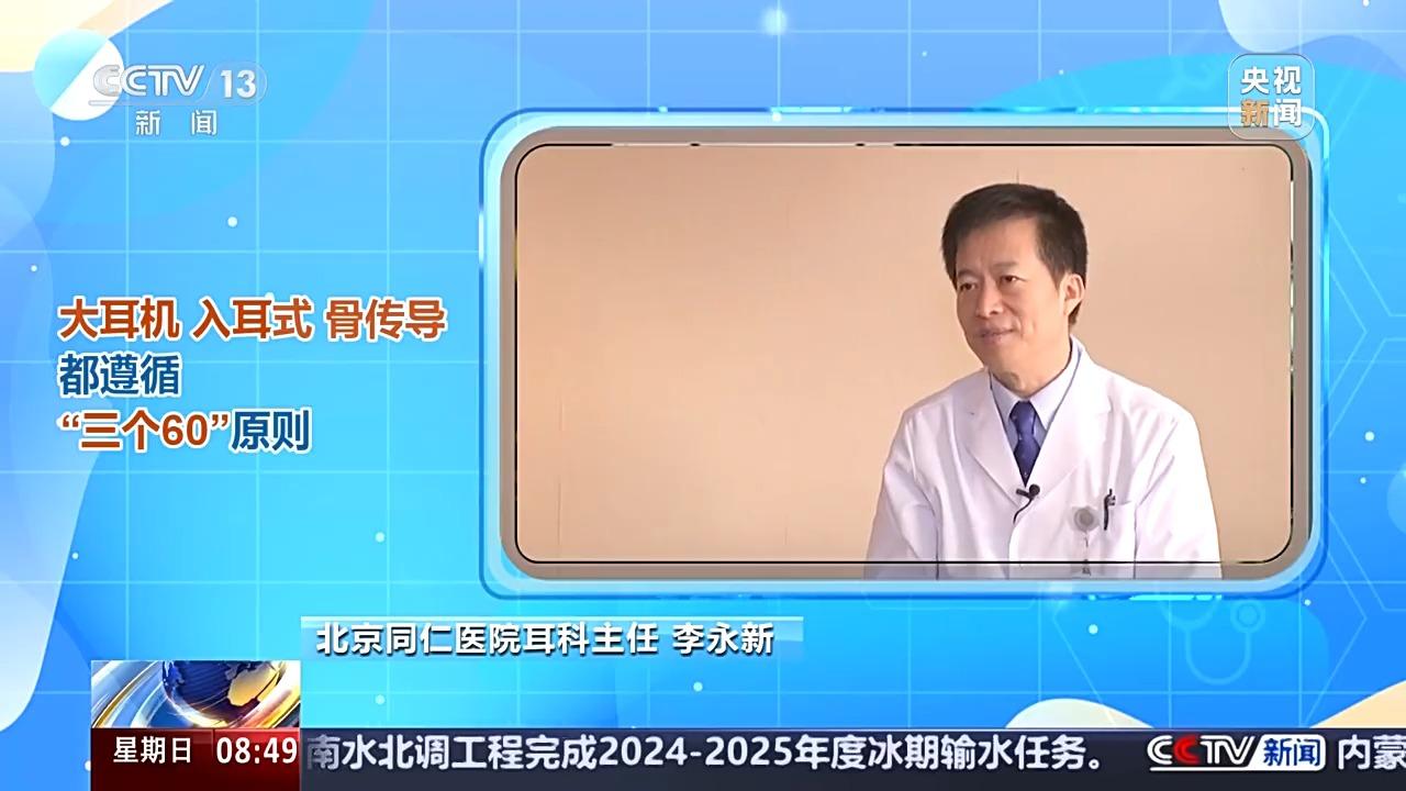 北京同仁医院耳科主任 李永新:耳机它的使用是有一个原则,无论是哪种耳机,它还是遵循“三个60”的原则。