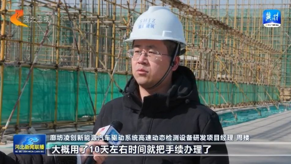 那边正在加紧进行对设备的安装调试,我现在是来到了廊坊凌创科技发展有限公司新能源汽车驱动系统高速动态检测设备研发项目的现场,这个项目已经是完成了主体结构的70%建设,预计在今年的10月份投入运营。