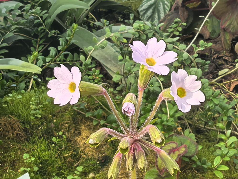 马关报春特产于云南省文山壮族苗族自治州马关县,分布在海拔1700至1900米的季风常绿阔叶林下的石灰岩岩壁上,是报春花科报春花属多年生草本植物。此次开花的马关报春,由该所孙卫邦研究员团队于2024年4月野外调查中在马关县古林箐乡引种而来,当年5月保育于昆明植物园极小种群野生植物保育温室,于近日首次开花。