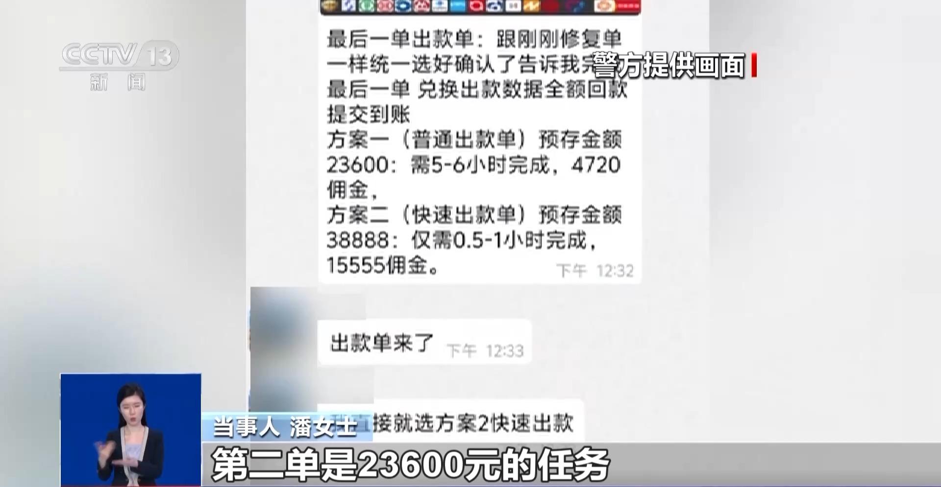 当事人 潘女士:一开始都是一些简单的任务,做一个可以得到几元到几十元不等。我陆续做了一些任务,对方给我微信发了十几笔红包,分别是3.3元至23.8元不等。这时候我就开始相信对方了,以为做任务真的能赚钱。