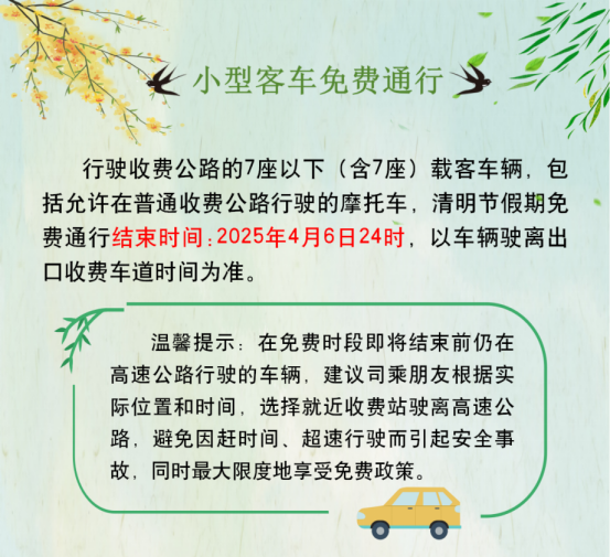据预测分析,今天假期尾日(4月6日)16时至19时是假期车辆集中返程高峰时段,高速公路下午流量较上午偏多,持续时间较长。省公安厅交通管理局提醒广大驾驶人: