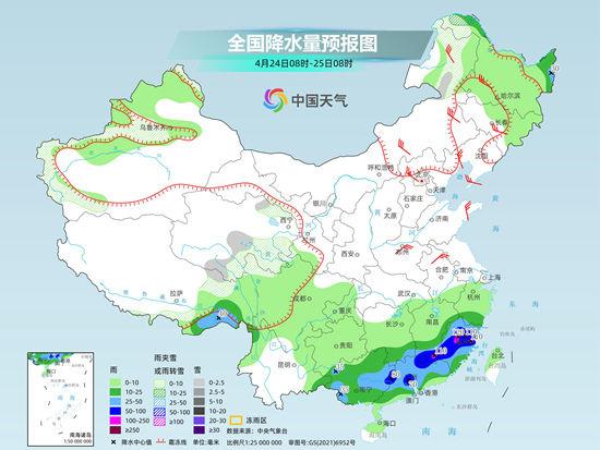 后天,新疆沿天山地区和南疆西部山区、青海中东部、内蒙古东北部、西藏东北部、川西高原北部等地部分地区有小雪或雨夹雪。江南南部、华南大部以及黑龙江东北部、西藏东南部等地部分地区有中到大雨,其中,江西南部、福建西部和北部、广西东部、广东中北部等地部分地区有暴雨到大暴雨。