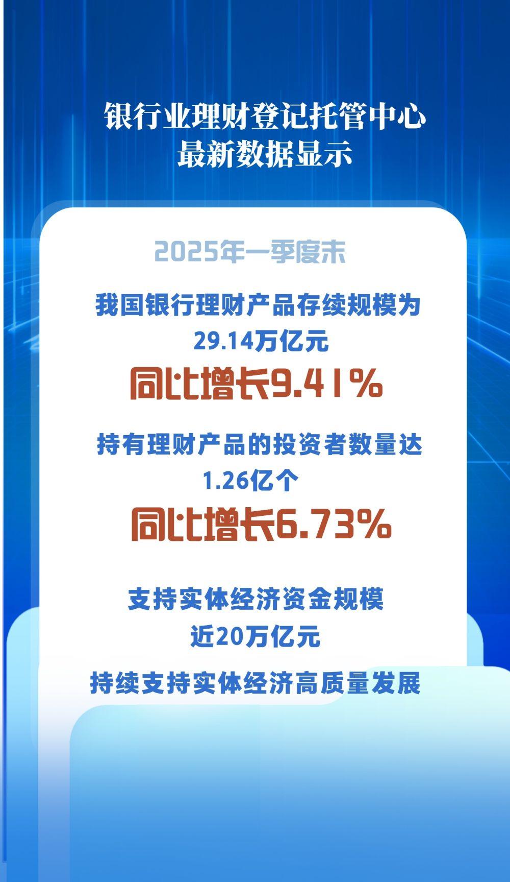 银行业理财登记托管中心最新数据显示,截至2025年一季度末,我国银行理财产品存续规模29.14万亿元,同比增长9.41%,行业呈现良好发展态势。